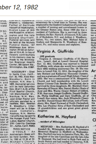 | Death | November 12, 1982 | Lowell, Middlesex County, Massachusetts, United States | ||