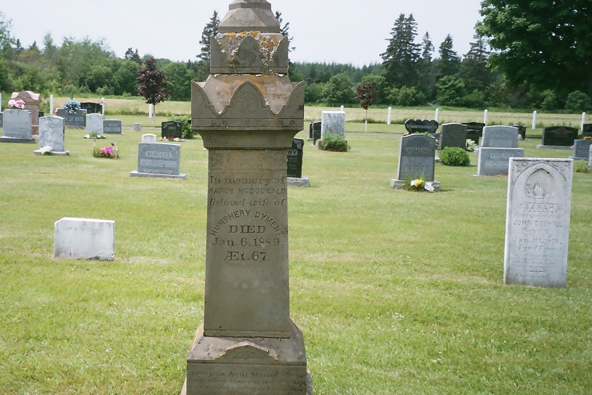 There is a small gravestone for a James McDougald who died in 1867 next to that of Sarah (Colwill Dyment), and behind the grave for Humphrey Dyment and Nancy McDougald in the Bideford United Church cemetery. Given that Sarah McDougald, a widow, married John Colwill in 1868 this would seem to be him.