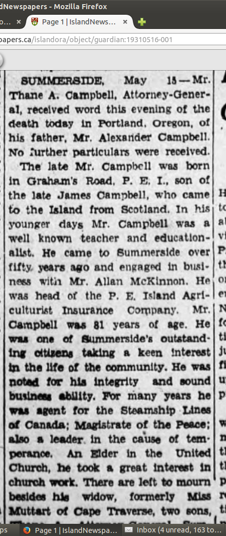 | Birth | September 28, 1854 | Grahams Road, Lot 20, Queens County, Prince Edward Island, Canada | ||