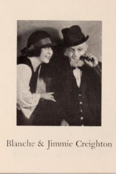 BLANCHE AND JIMMY CREIGHTON In the Clever Specialty,' "MUDTOWN VAUDEVILLE" The comedy wallop of the show is Blanche and Jimmy Creighton, who appear as a small town girl and old gentleman ...(1926)
