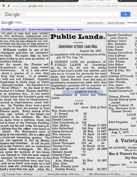 In 1877, a newspaper notice said that Charles was behind on his rent, and risked losing his land.