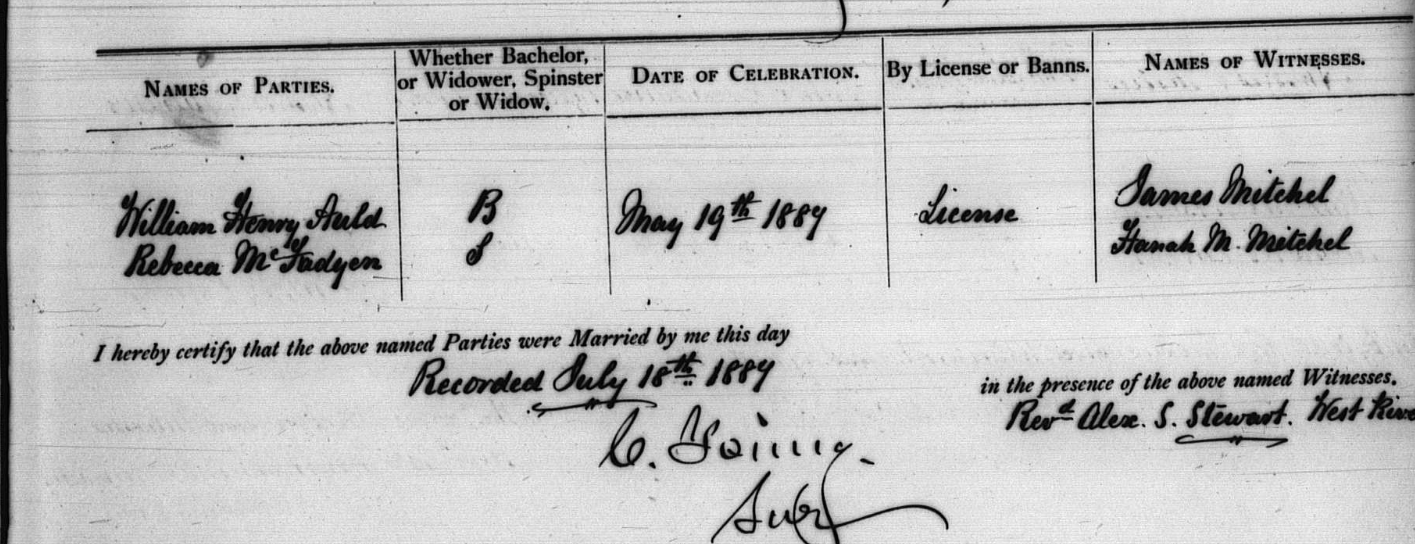 Family of Auld, William Henry and McFadyen, Rebecca Ellen |