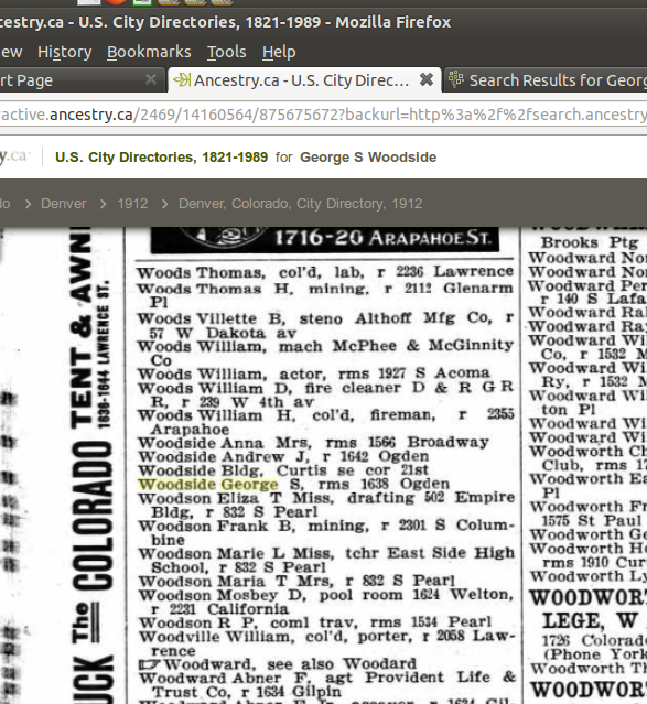 George T. Woodside was in Denver in 1876, working for his brother Andrew.